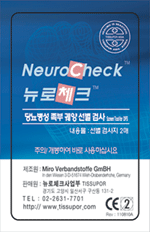 뉴로체크™는 간단한 물리 화학적 원리를 토대로 독일 Reinhard Zick 박사가 개발 하였으며 제조는 독일 Miro 사에서 합니다. 용도는 당뇨신경병증족부궤양 진행을 검사하는 정확하고 우수한 의약품 입니다. 당뇨병증으로 인한 신경병증이 발생했을 시에 자율신경계의 손상으로 발한 작용이 저해됩니다. 뉴로체크는 발바닥의 땀분비로 인한 미세한 수분의 양을 의학적으로 감지하여 당뇨병으로 인한 신경손상을 색깔변화로 진단해주는 의약품 입니다.